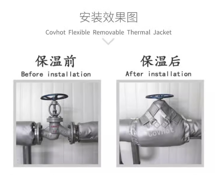 相比之下,可拆卸柔性保溫產(chǎn)品(如科好特科技研發(fā)的“COVHOT®”系列)在需要頻繁檢修的部位優(yōu)勢顯著。其靈活拆裝、重復(fù)使用的特性,可大幅降低維護(hù)成本,尤其適用于閥門、三通、過濾器等需定期檢修的部件。此外,柔性保溫材料還能適應(yīng)復(fù)雜形狀的設(shè)備,提供更精準(zhǔn)的隔熱、防凍及防火保護(hù),滿足工廠個(gè)性化需求。